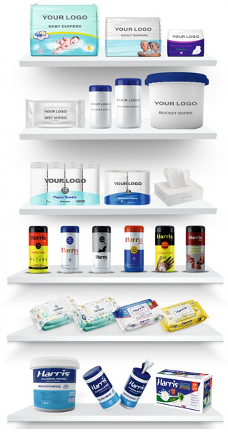 Wet Wipes & Hygiene: Baby wipes, adult hygiene products, and general-purpose sanitary items